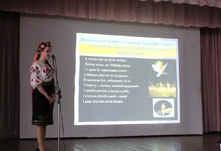 19 лютого 2015 року студенти 11 групи спеціальності “Лікувальна справа” разом із викладачем української мови та літератури Кочмар Ю.Л. провели виховний захід, присвячений Міжнародному дню рідної мови та вшануванню подвигу учасників Революції Гідності та вшануванню пам’яті героїв Небесної сотні. Свято розпочалось Гімном України. Потім студенти читали вірші приурочені вшануванню подвигу учасників Революції Гідності та вшануванню пам’яті героїв Небесної сотні. А сотню вже зустріли небеса… Летіли легко, хоч Майдан ридав … І з кров’ю перемішана сльоза… А батько сина ще не відпускав… Й заплакав Бог, побачивши загін: Спереду – сотник, молодий вродливий. І юний хлопчик в касці голубій, І вчитель літній сивий – сивий… І рани їхні вже не їм болять… Жовто-блакитний стяг покрив їм тіло… Як крила ангела, злітаючи назад, Небесна сотня в вирій полетіла… Світлини того періоду нагадали про перших Героїв Небесної Сотні, які загинули у неоголошеній війні на Сході України. Вони були звичайними людьми, а стали Ангелами, що берегтимуть нас на небі. Пам’ять про загиблих вірних синів і дочок України ніколи не згасне в наших серцях: …бо пам’ять вічна і народ не забува, Хто виборов життям ці перемоги, Небесна сотня, чиста та жива, Нам каже з неба: « Доброї дороги…» Хвилиною мовчання вшанували річницю пам’яті героїв Небесної сотні, переглянули відеофільм “Герої не вмирають”. На завершення заходу студентки 32 групи спеціальності “Сестринська справа” Ткачук Наталія та Іваха Маргарита виконали пісню “Ми ніколи не зречемося рідної мови, рідної землі”.