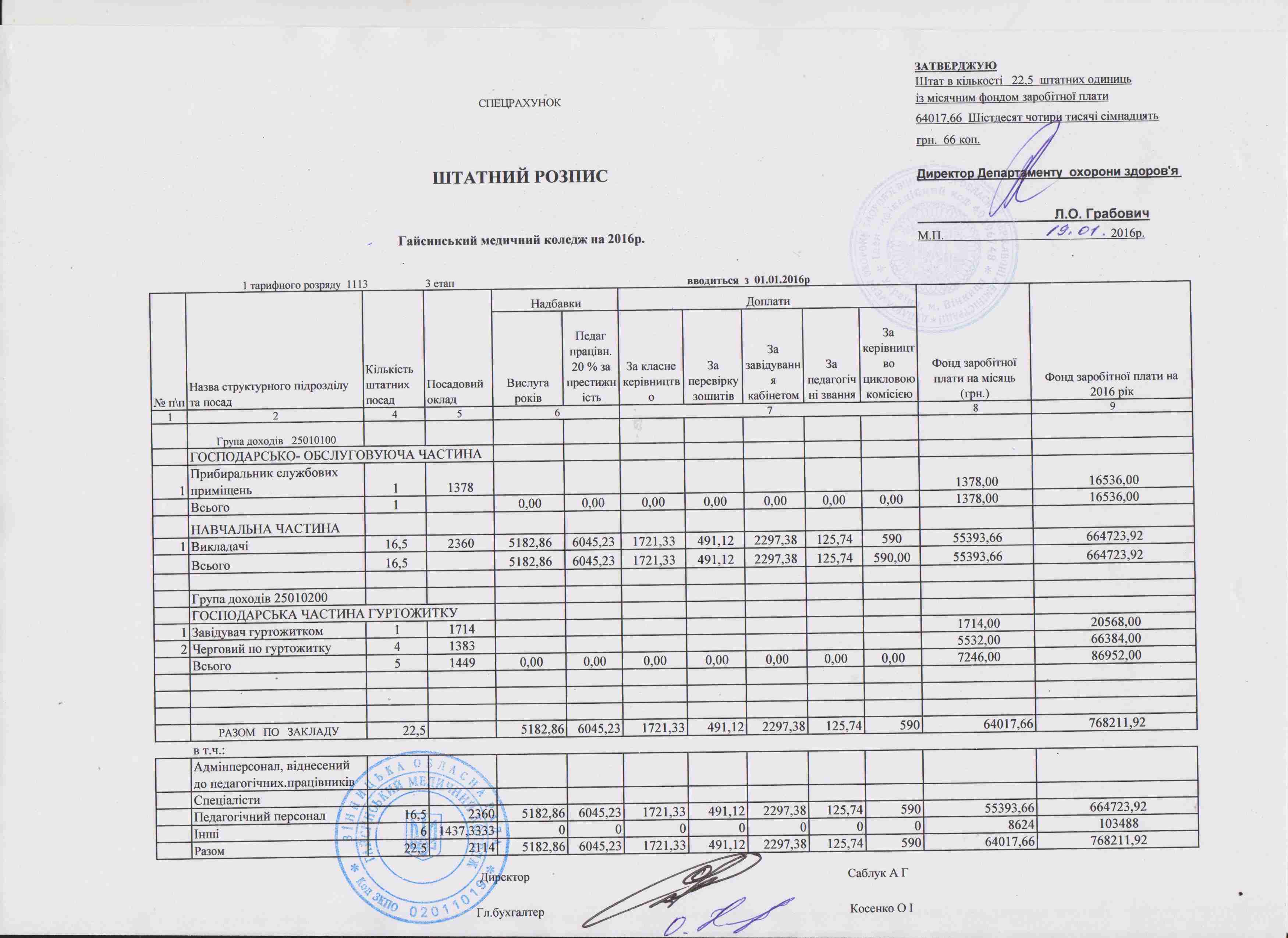 Штатний розпис на 2016 рік
