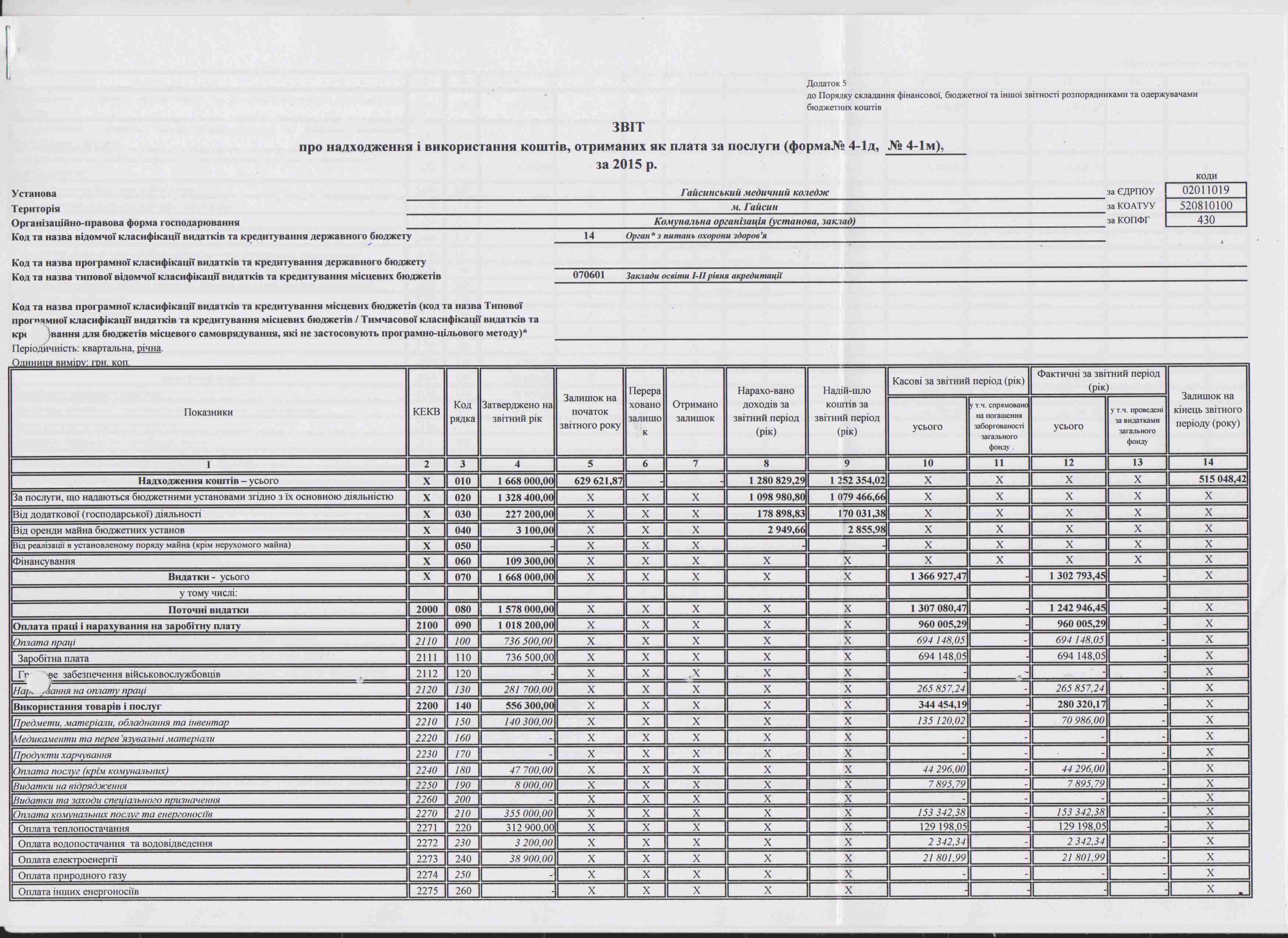 Звіт про використання та надходження коштів у 2015 році (продовження)